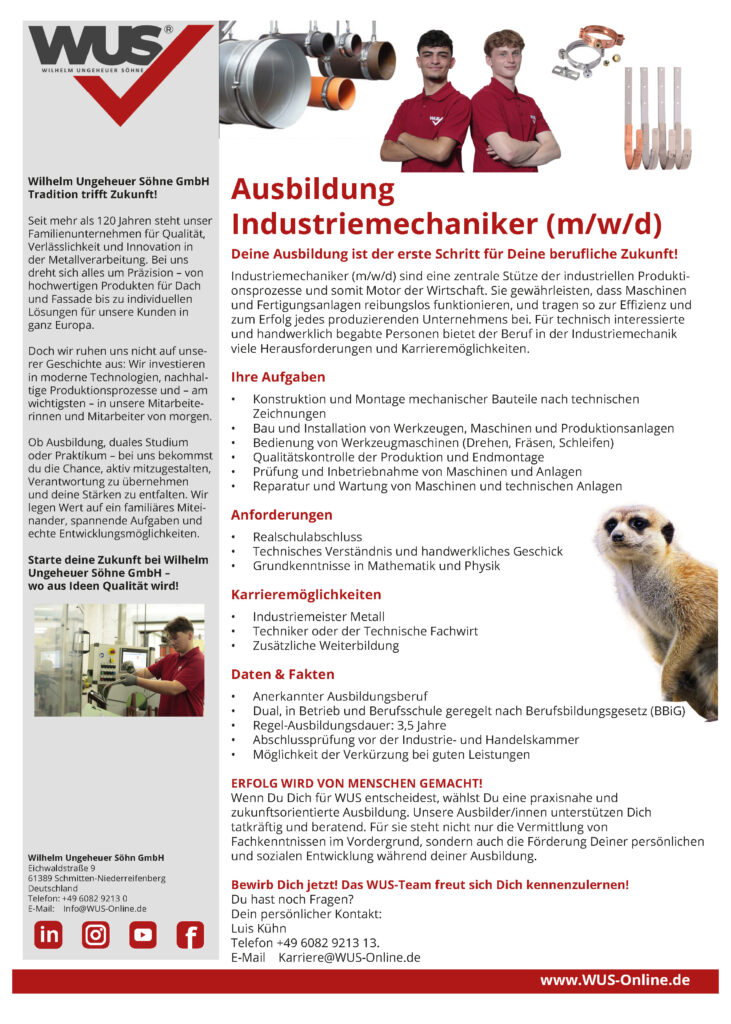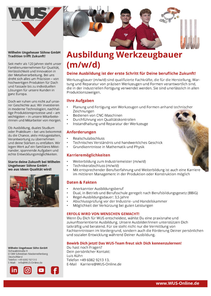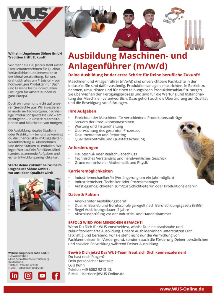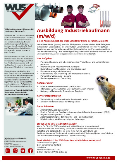 Have we aroused your interest? Then become a part of the WUS TEAM. Please send us your curriculum vitae to karriere@wus-online.de. If you have any questions about the position, the team or our company, please do not hesitate to contact us.